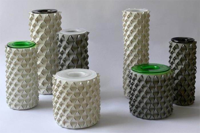 כך, למשל, קולקציית קעריות הסבון והפמוטים של המעצב הישראלי דן גולדשמיט עשויות מבטון שנוצק לתוך שקיות פלסטיק – מה שמקנה למוצרים שלו מראה רך ואוורירי. ואילו משרד האדריכלים היפני Schemata השתמש בשקיות בד כדי להעניק לדוכן הקונפיטוריה Papabubble בטוקיו את המרקם של מרשמלו צלוי.